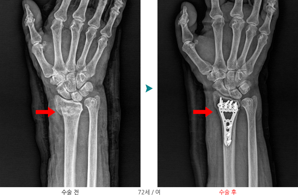 - 개방적 정복술 및 금속판/금속나사를 이용한 내고정술 시행