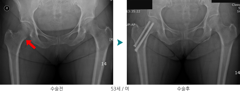 골절형태와 위치에 따라 적절한 치료방법을 선택하며 소아, 중년, 노년에 따라서 정복과 고정하는 방법이 다를 수 있습니다. 노년층의 경우 경부골절에서 골유합이 어렵기 때문에 인공관절 치환술이 많이 시행됩니다.